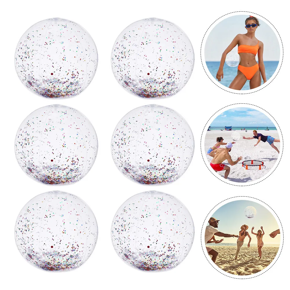 6Pcs Sequin Inflatable Beach Ball Fun Kids Play for Party Favor Summer Outdoor Children Plaything Inflatable Beach Ball