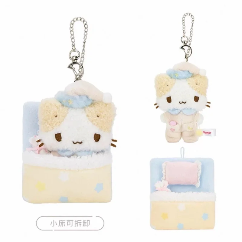 Masyumaro Fluffy Fuwa Nyanko Plush Keychain Keyring Good Night and Sweet Dreams Anime Cat Kawaii Cute Bag Keychains Mascot Charm