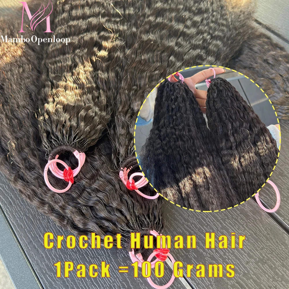 Kinky Straight Microtexture Crochet Human Hair Raw Virgin Hair Weave Bundles Crochet Feather Human Hair Extensions 100g/pack