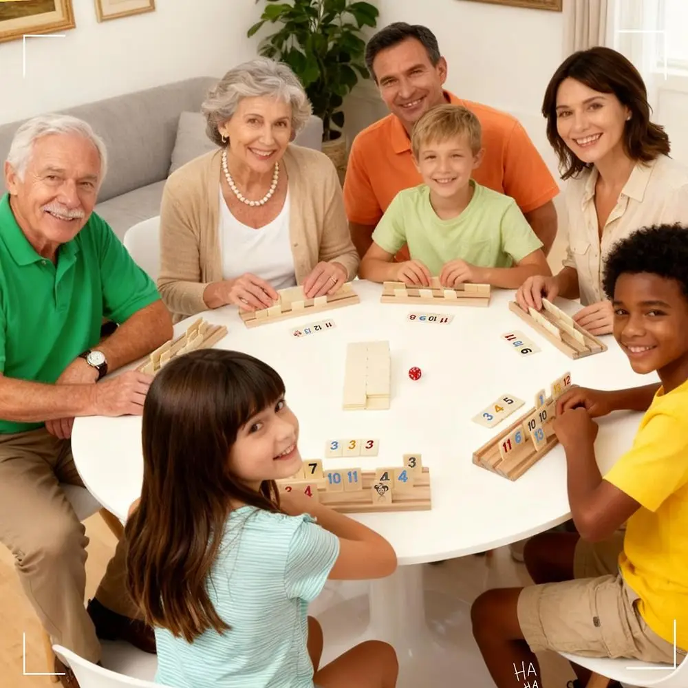 106Pcs Classic Games Wooden Rummikub Game 106 Tiles Portable Case Rummy Cube Game Travel Set Dice Parent-Child Interactive