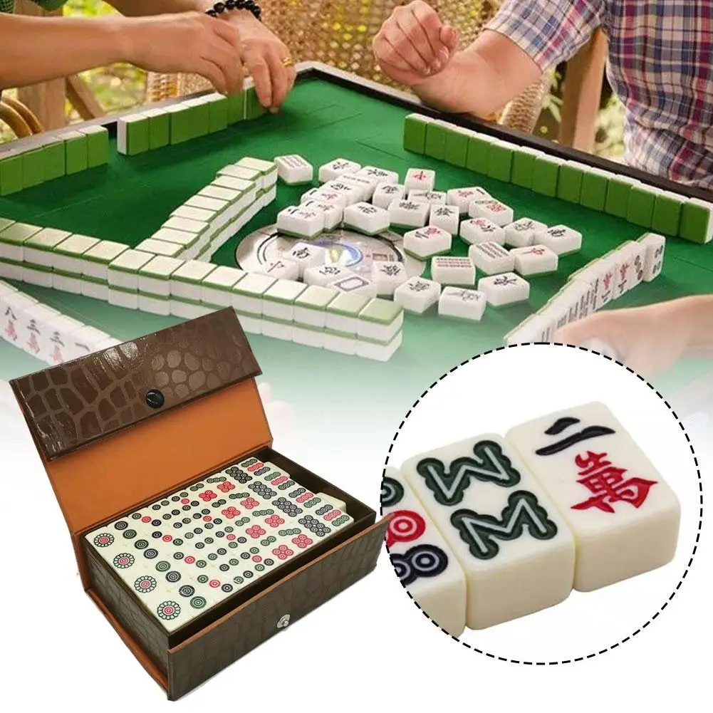 Chinese Mahjong Game Set 144 White Engraved Mini Tiles For Family Gathering For Chinese Style Game Play Family Leisure Time