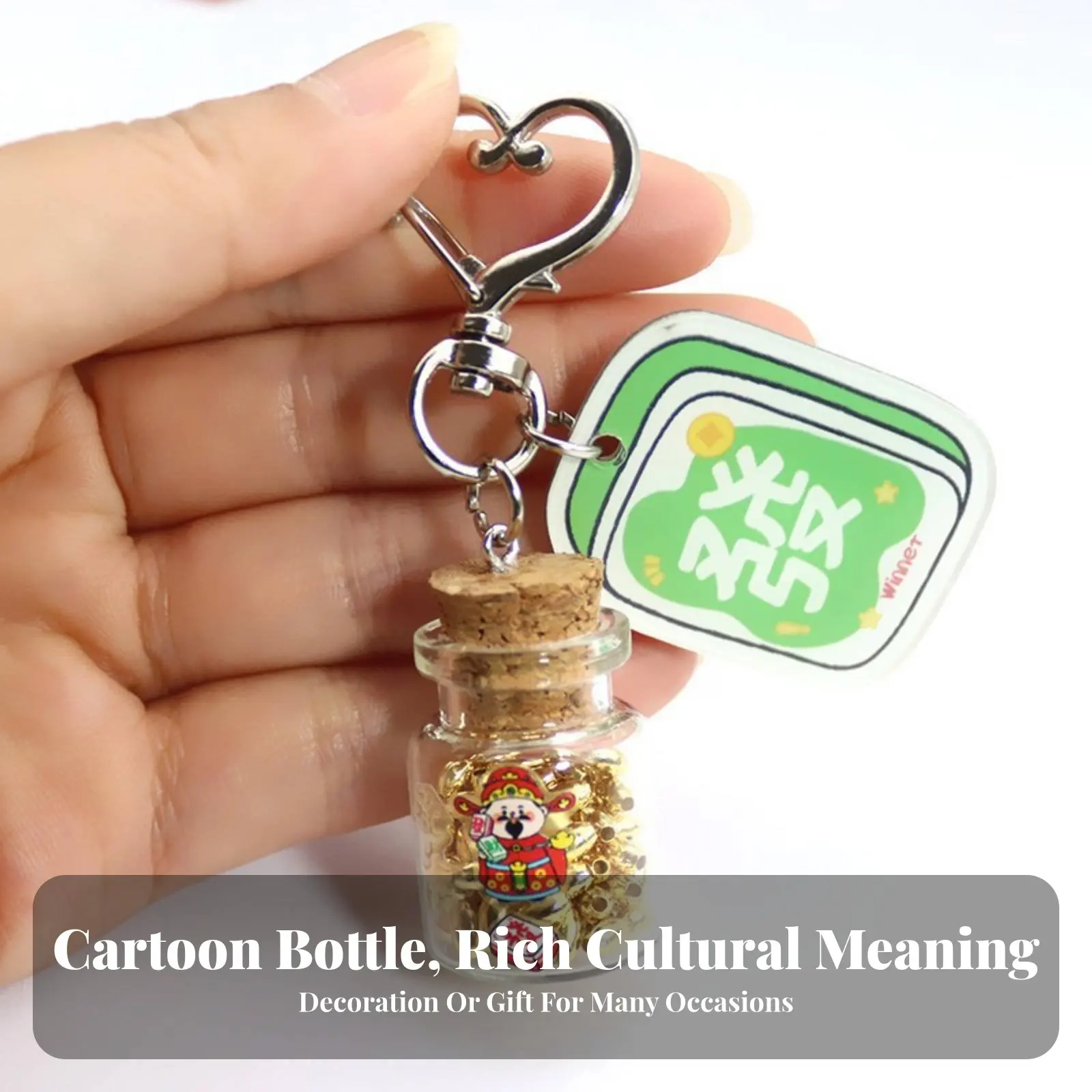 Glass Bottle Keychain Heart-Shaped Clasp Corked Vial Locket Bag Trinket Stylish Accessory for Mahjong Players, Purse, Backpack
