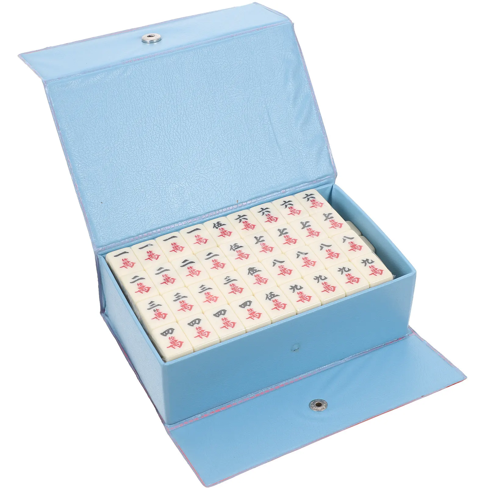1Set Portable Mahjong Set Mini Travel Chinese Mahjong Party Board Game Lightweight Durable with Storage Box