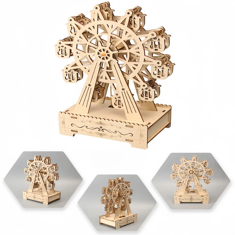 DIY 3D Puzzles Mini Ferris Wheel Music Octave Box Rotatable Wooden Model Mechanical Assembly Kit Decorative Toy Gift