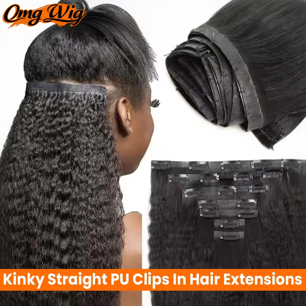 Kinky Straight Invisible Hair PU Seamless Clip Ins Human Hair Extensions 110g PU Clip In Extensions 7 Pieces Full Head