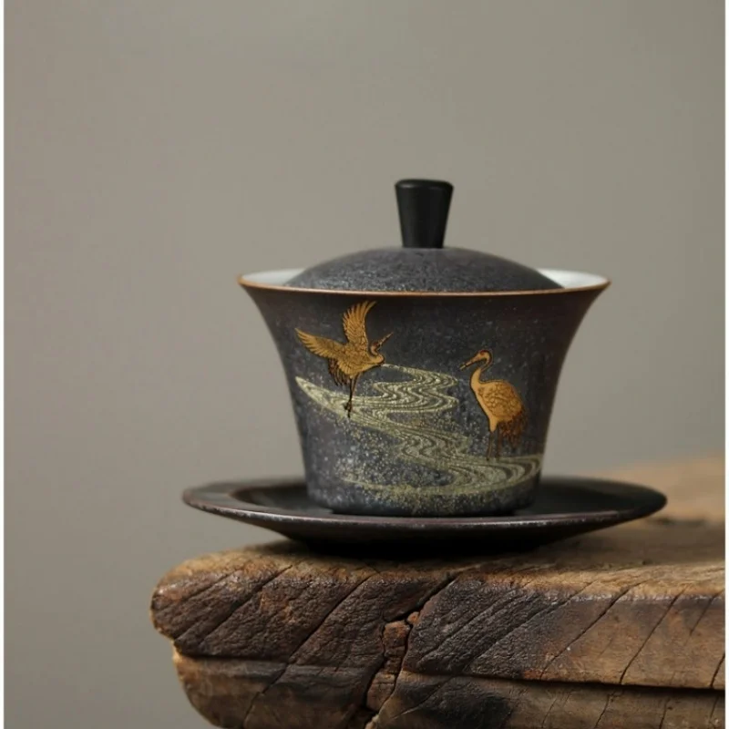 Ceramic Crane Gaiwan Ceramic Handmade Household Kung Fu Tea Set Tea Bowl Tea Cup Tea Maker Tea Ceremony