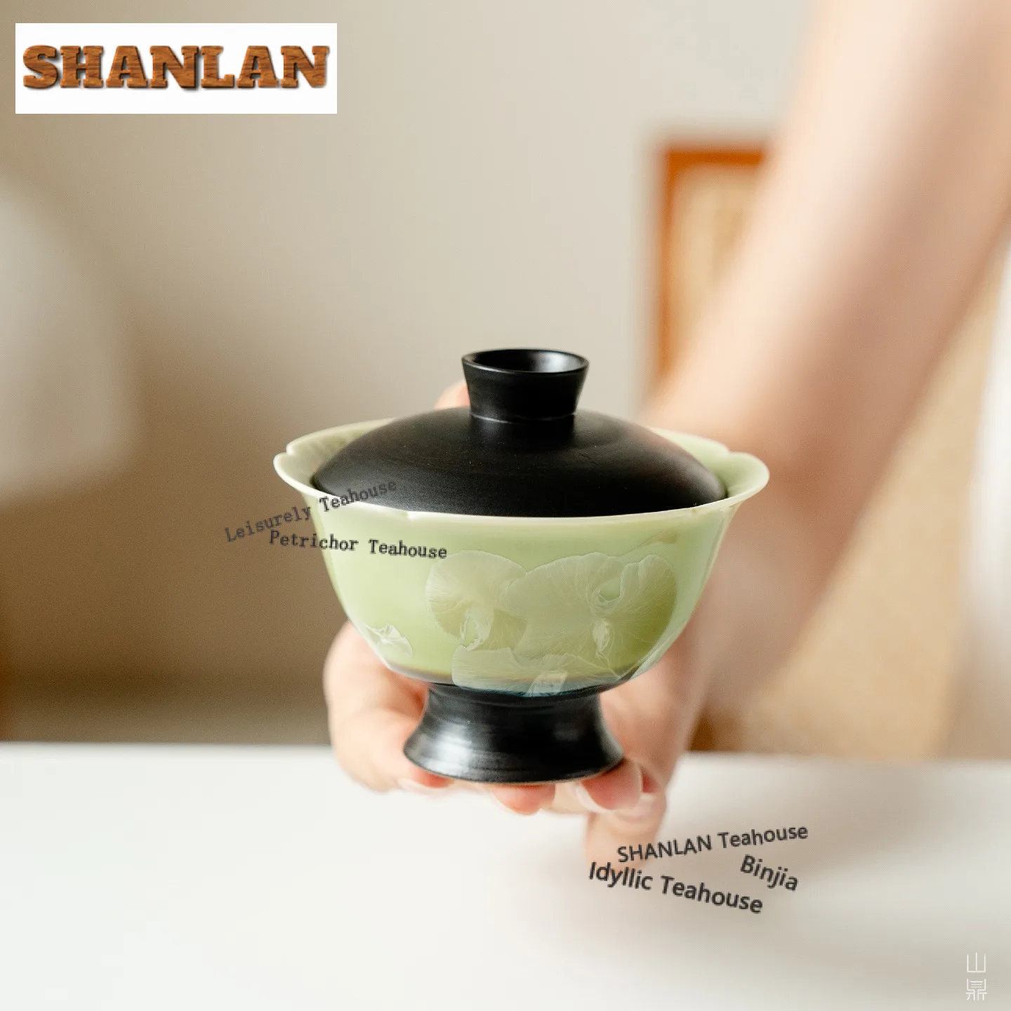 180ml Handmade Longquan Celadon Gaiwan Jun Kiln Kung Fu Tea Cover Bowl Tea Tureen Tea Making Cover Bowl Chinese Tea Set Ornament