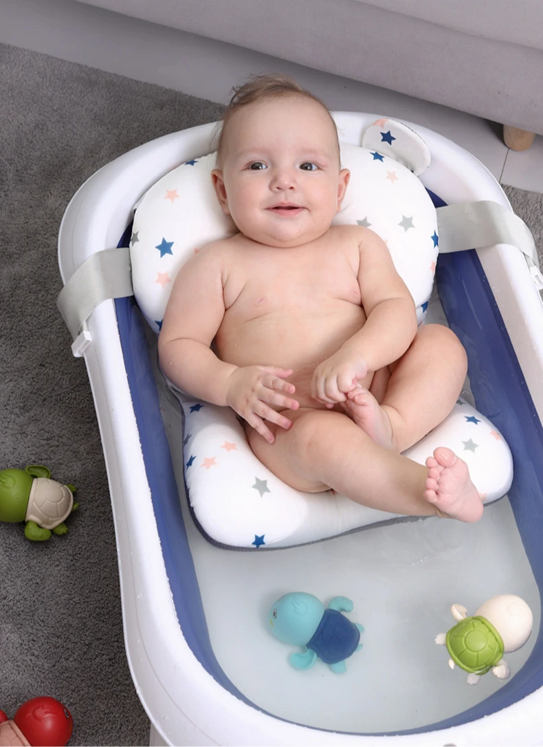 Foldable Baby Shower Suspension Bath Pad Baby Support Seat Pad, Adjustable Bathtub Shower Anti Slip Mesh Bag Pad