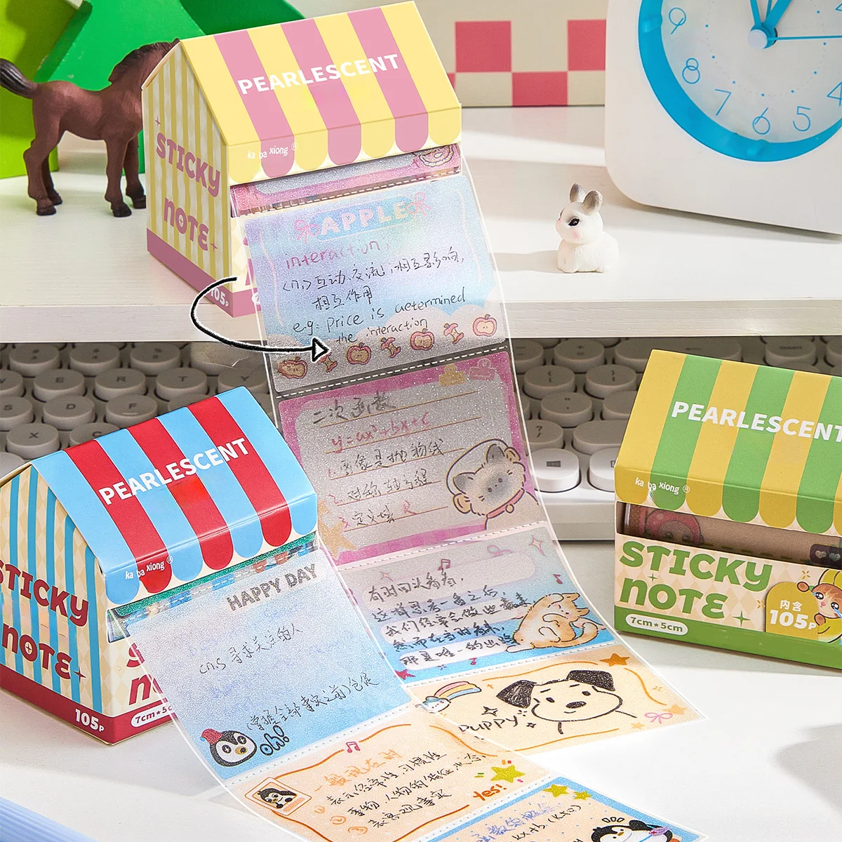 105 Sheets House-Shaped Pull-Out Pearlescent Sticky Notes, Cute Animal Pattern Decorative Message Memo Pads