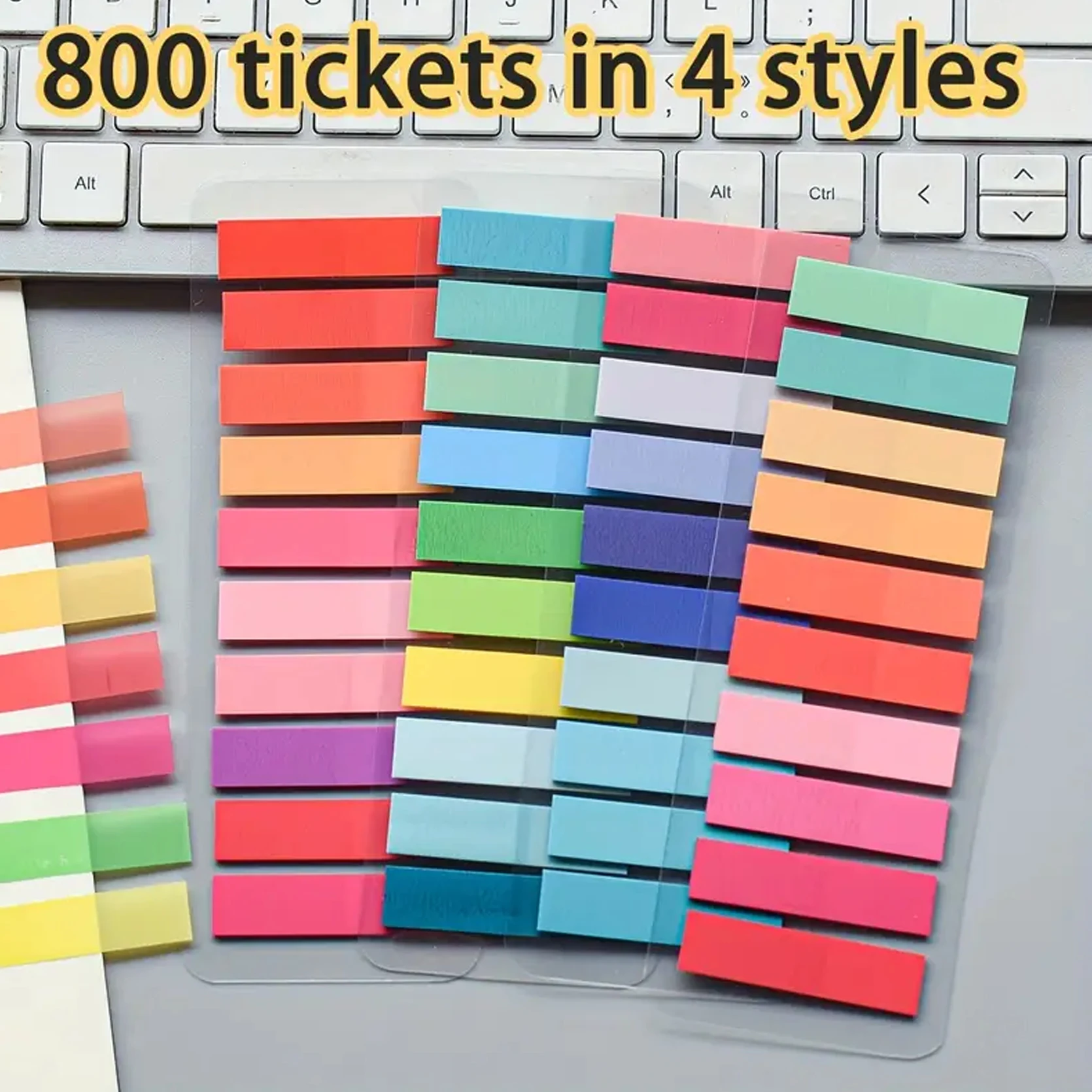 800 Sheets 4-Style Index Strips, Multicolor Self-Adhesive Page Tabs,Colorful Removable Sticky Notes for Reading & Study Supplies