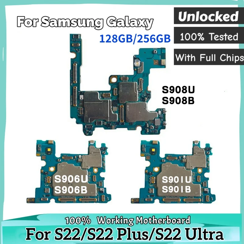 Unlocked S22 Plus S906U/B Mainbaord For Samsung Galaxy 5G S22 Ultra S901U S901B S908B S908U Logic Board Full Chip Motherboard