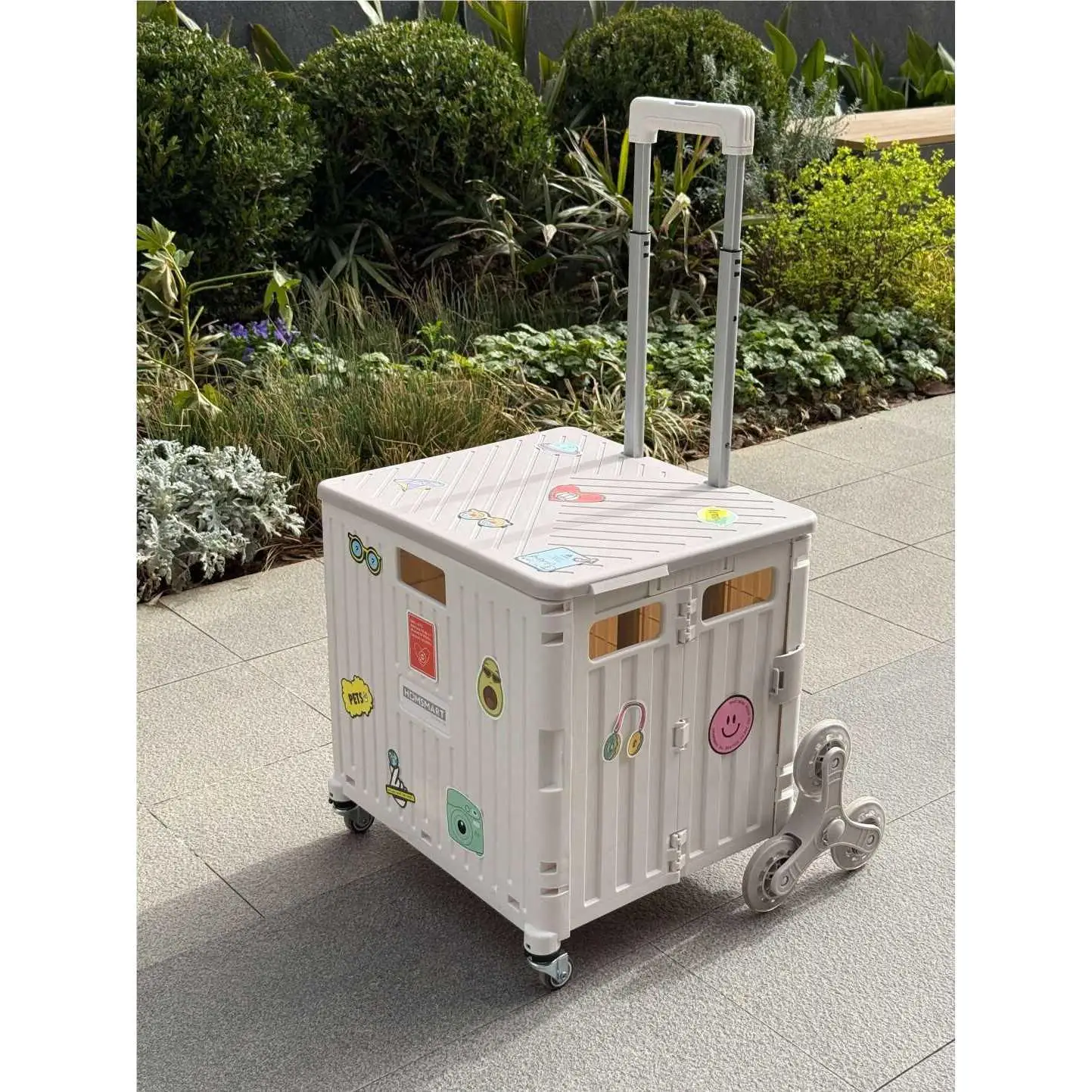 Portable Cam Hand Pull Box Foldable Storage Cart with Wheels Small op Cart Travel Outing Storage Box Household Use