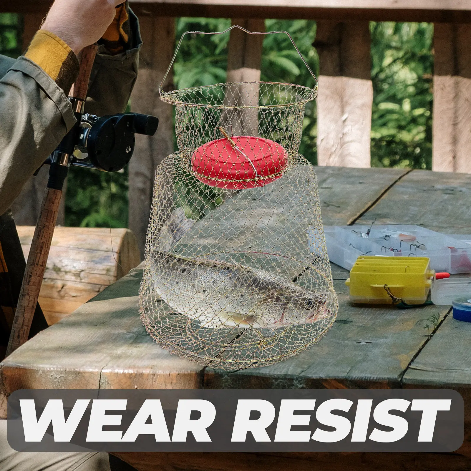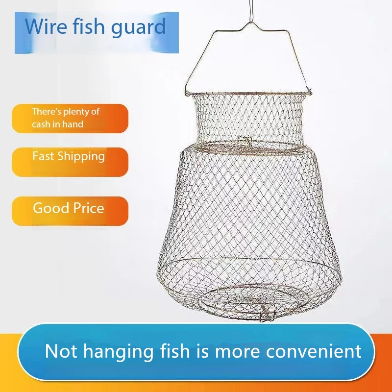 Sturdy Iron Mesh Floating Fishing Basket Fish Protective Cage for Angling Live Fish Storage Easy-Use Fishing Net Cage Supplies