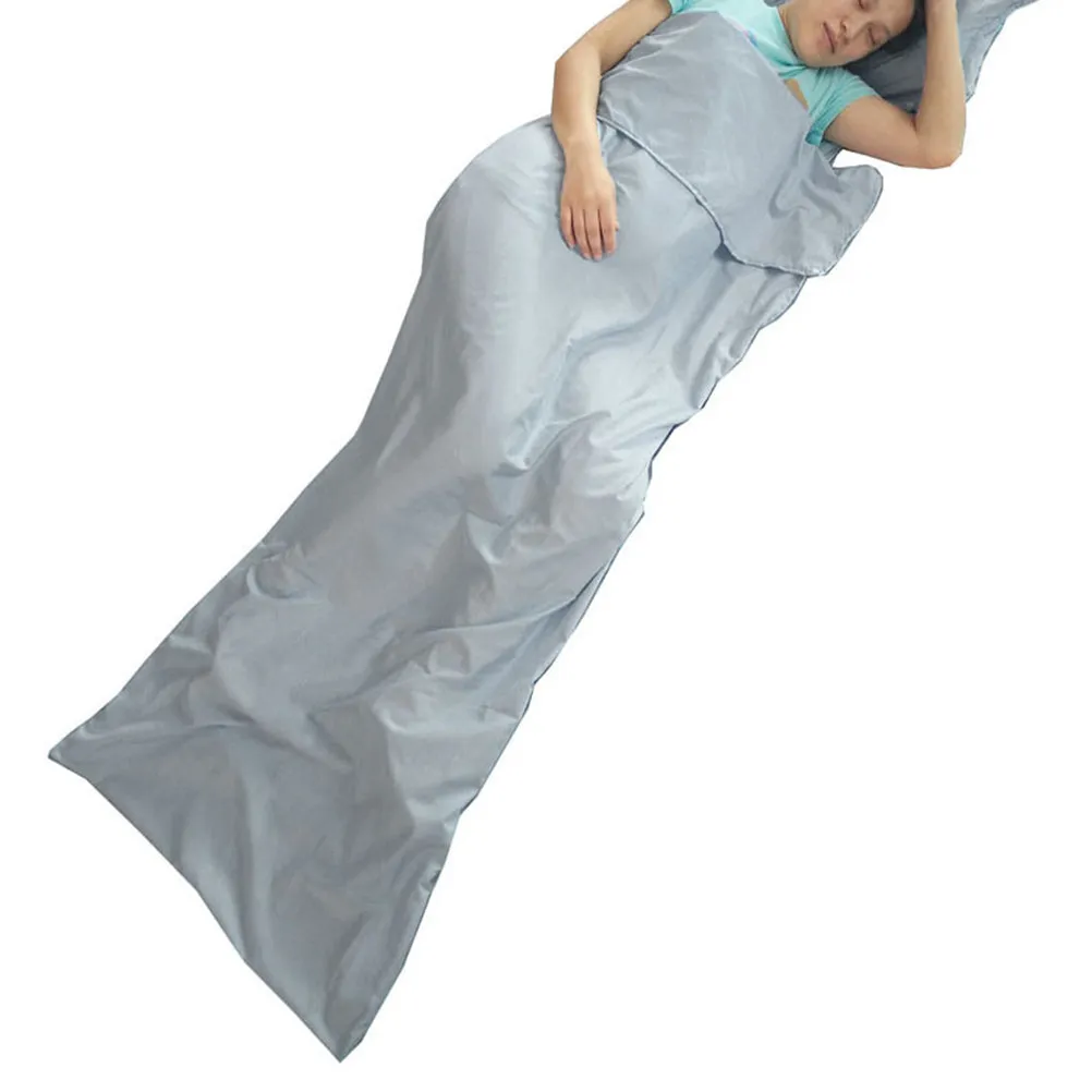 Adult Sleeping Bag Liner Portable Lightweight Gray Hotel Sheet Compact Sleep Sack for Camping Travel Outdoors Travel Sheet