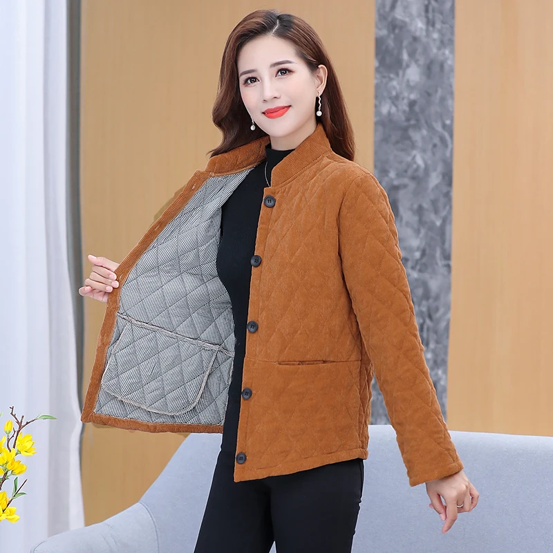 Thiened Cotton Jaet Corduroy Women's Mid-aged And ly Autumn Winter Clothes Button Sle Satin Fabric f High Collar