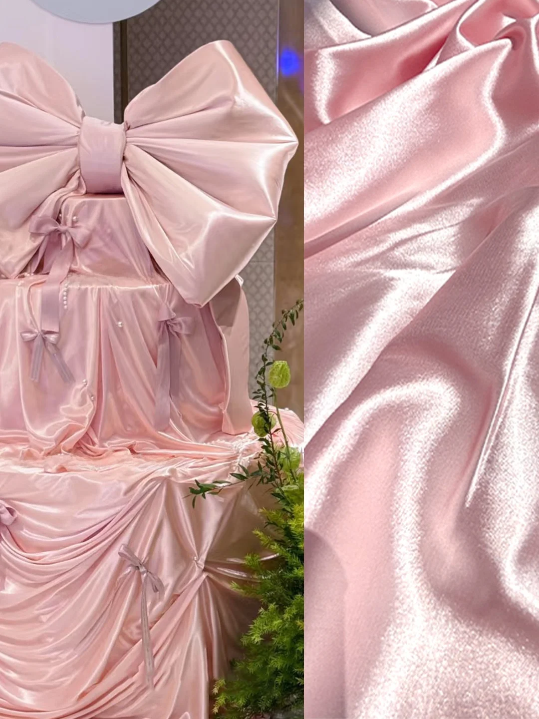 Pink Silk Satin Fabric with Crystal Knot Background Tablecloth Photography Shoot Smooth Lustrous Festive Decorations