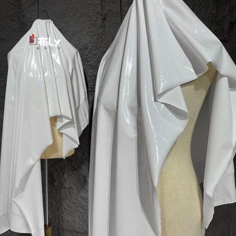 White micro-magic leather fabric soft elastic high-end bag pants clothing design fabric transformation