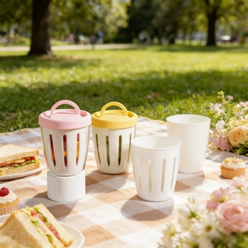 Cylindrical Plastic Salad Container with Fork Multifunctional Portable Fruit Cup Built In Drainage for Lunch Snack Meal Prep