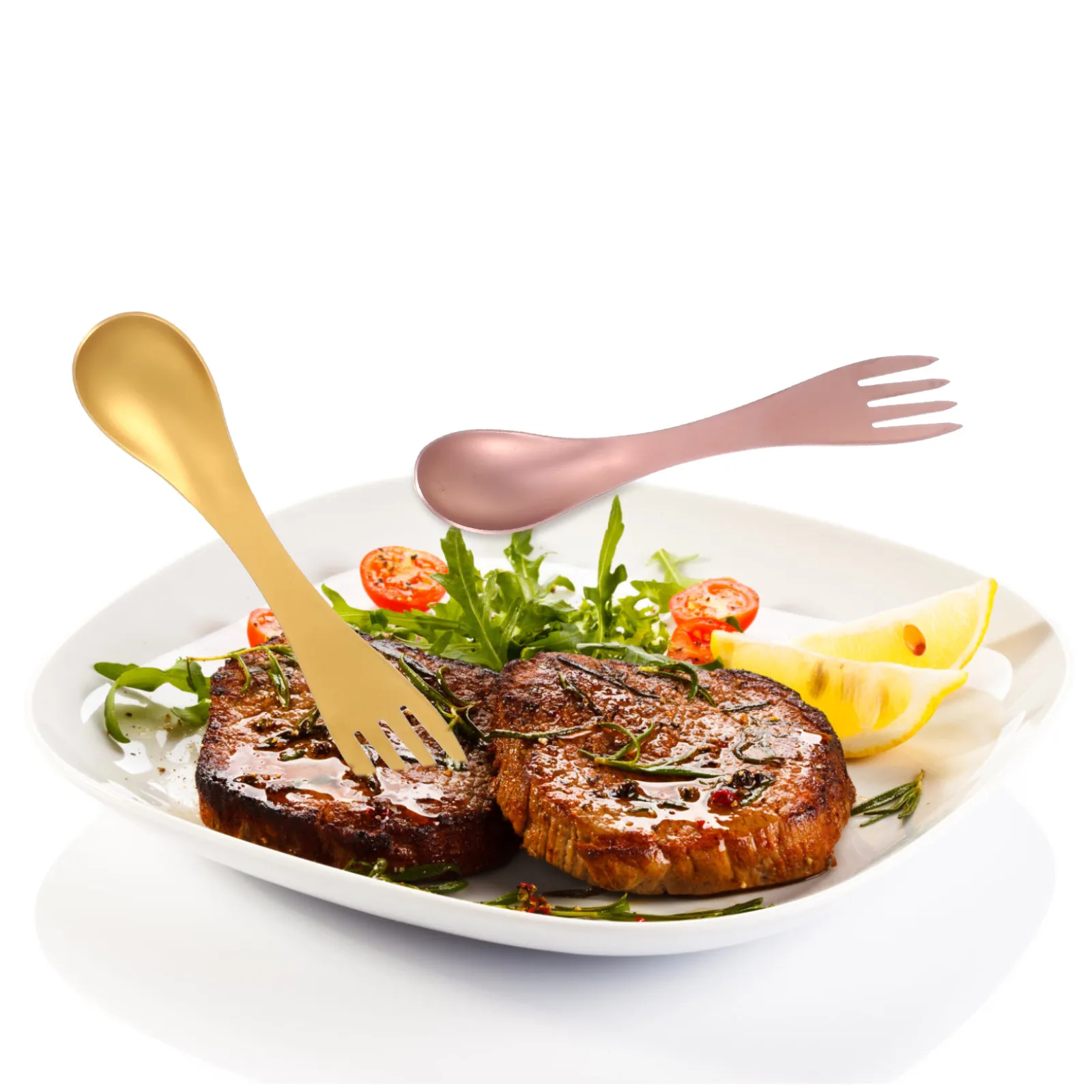 3pcs 2 In 1 Spoon Fork Stainless Steel Portable Camping Tableware Multi-Function Utensil For Outdoor Travel Picnic Soup Fruit