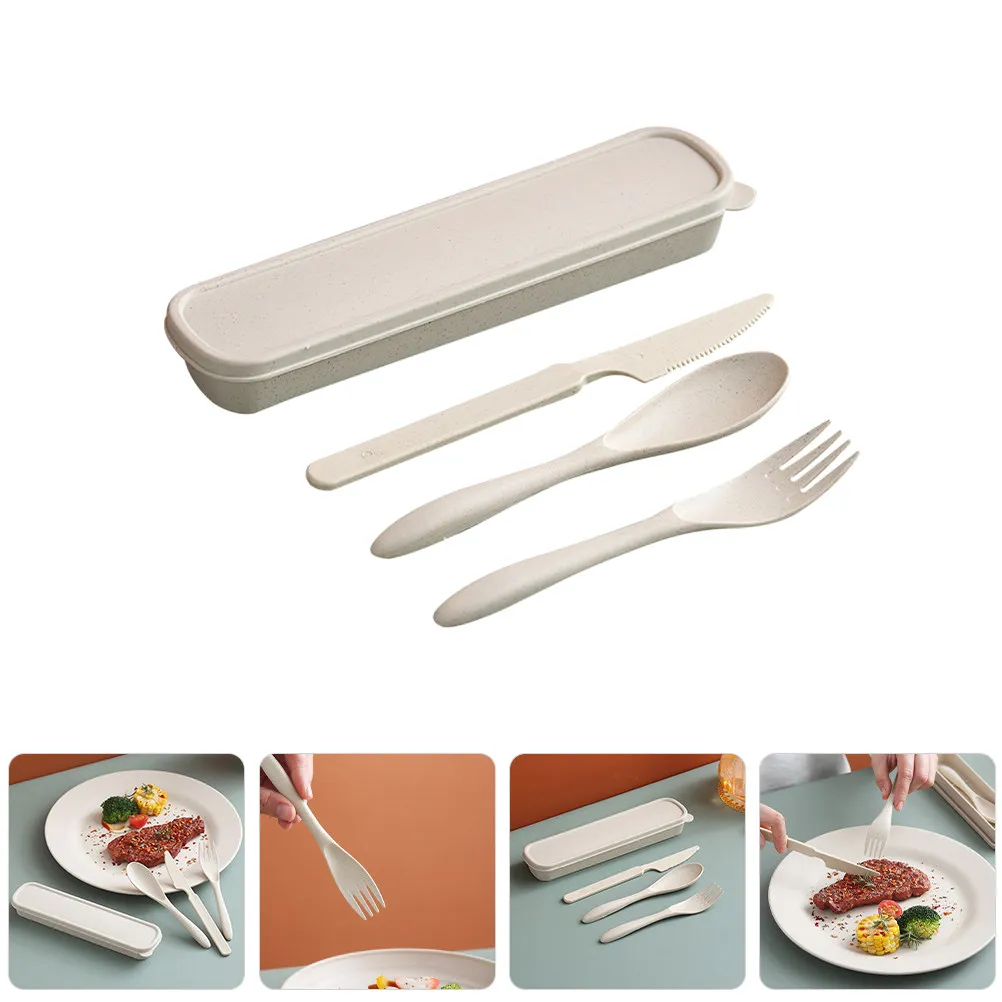 1Set Travel Cutlery Set Wheat Straw Reusable Portable Utensils Spoon Fork Cutter Lunch Box Camping Picnic Dinnerware