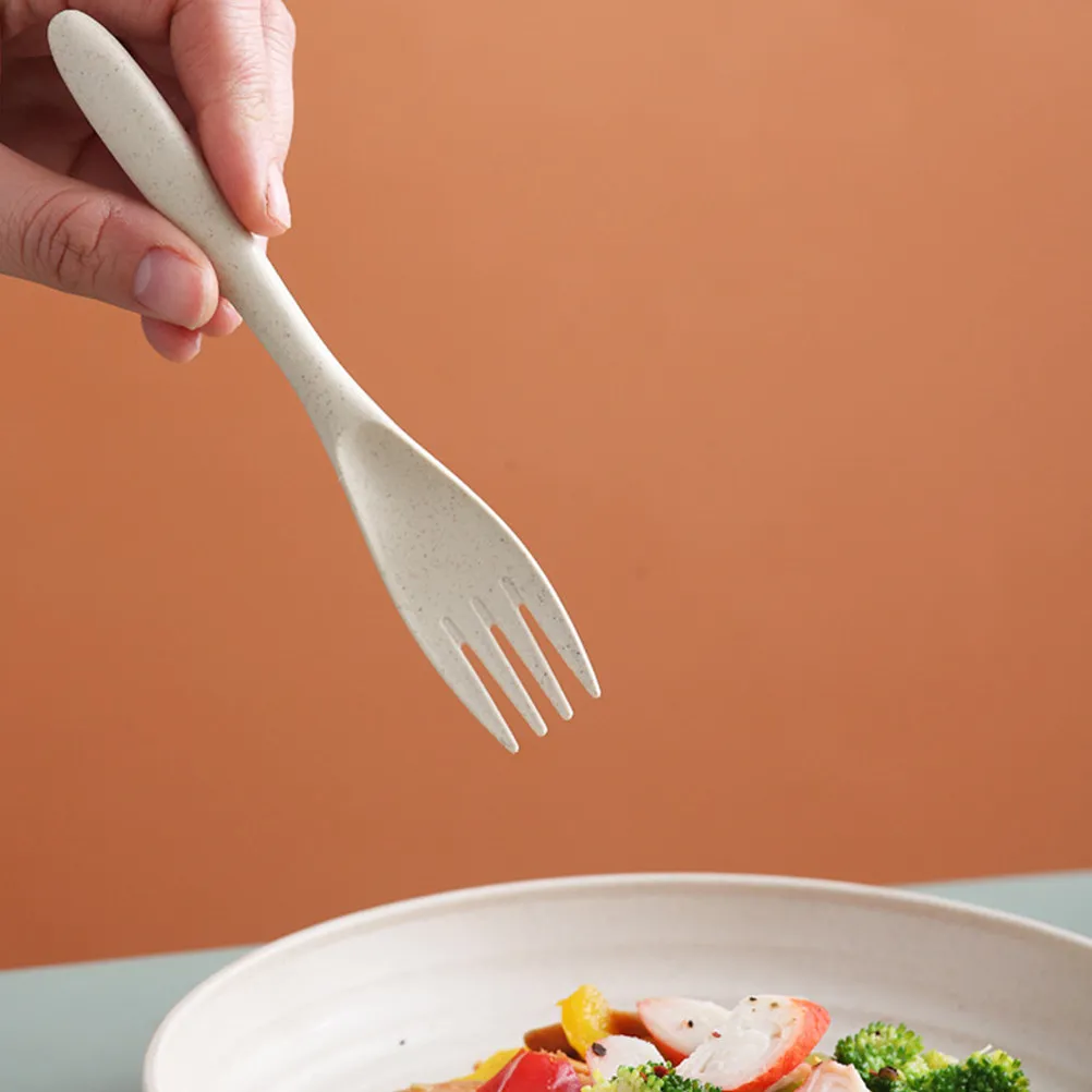 1Set Wheat Straw Portable Cutlery Set Travel Utensils Fork Spoon Cutter Reusable Lunch Box Picnic Camping Cutter Fork Spoon Set