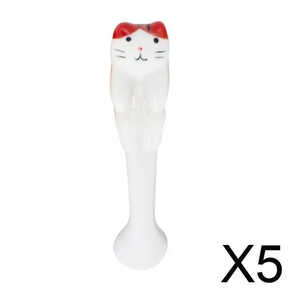 5xCartoon Animals Hanging Spoons Ceramic Cat Spoon for Restaurant Wedding Red and White