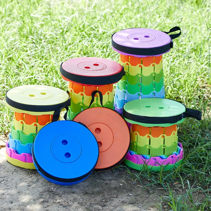 Folding stool, low stool, travel outdoor portable, adjustable, plastic, home use, space-saving, supportive