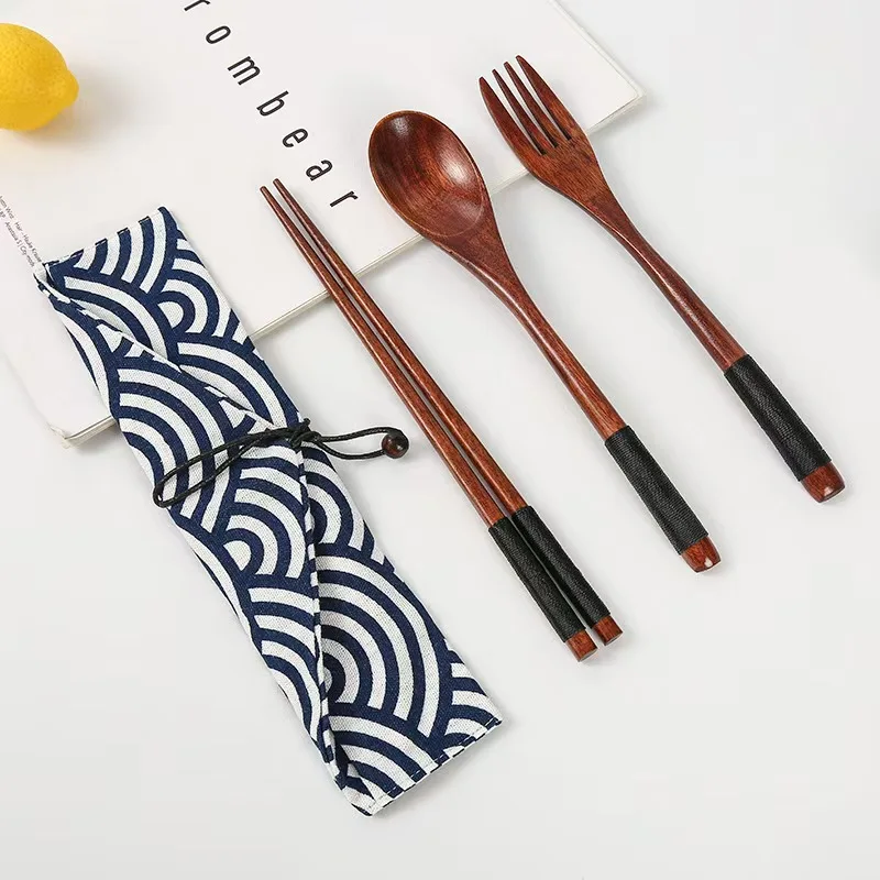 Portable Reusable Eco-Friendly Wooden Cutlery Set - Chopsticks Spoon Fork Easy to clean Sustainable Dining Utensils