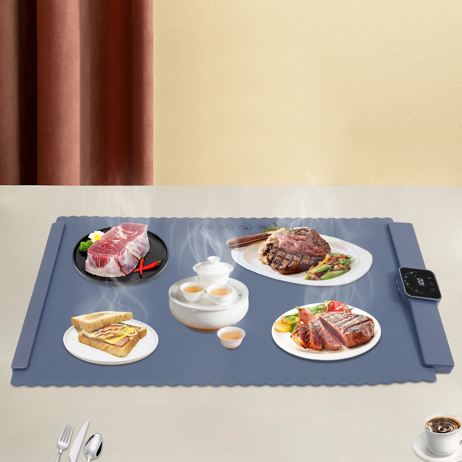 Silicone Food Warmer Mat with Child Lock, U-Shaped Heating Coil,Rollable Insulation Mat for Dishes Milk Tea Fermentation Thawing
