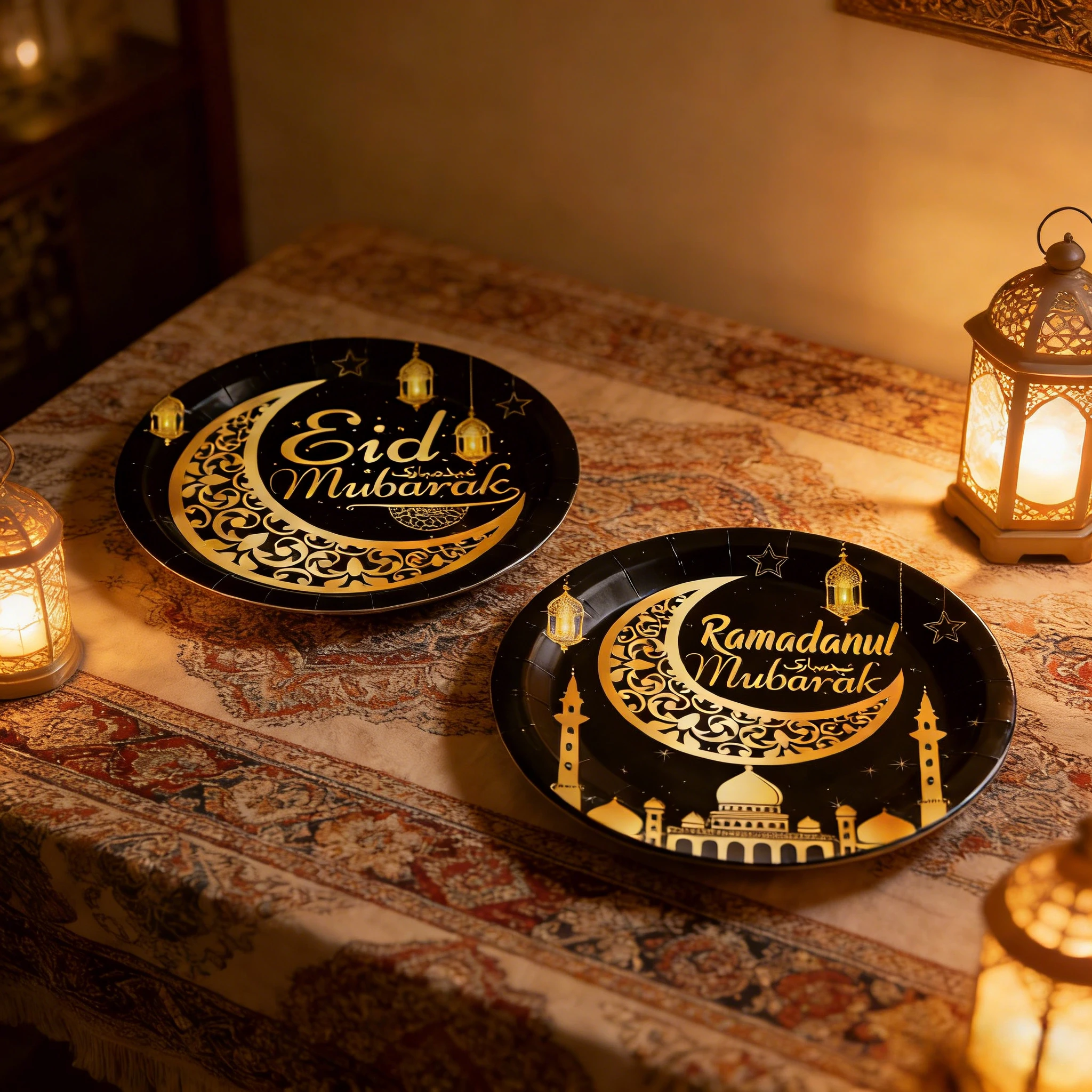 Ramadan Islamic Party Tableware Disposable Paper Plates Oil Waterproof for Ramadan Eid Dinner Family Gathering Supplies