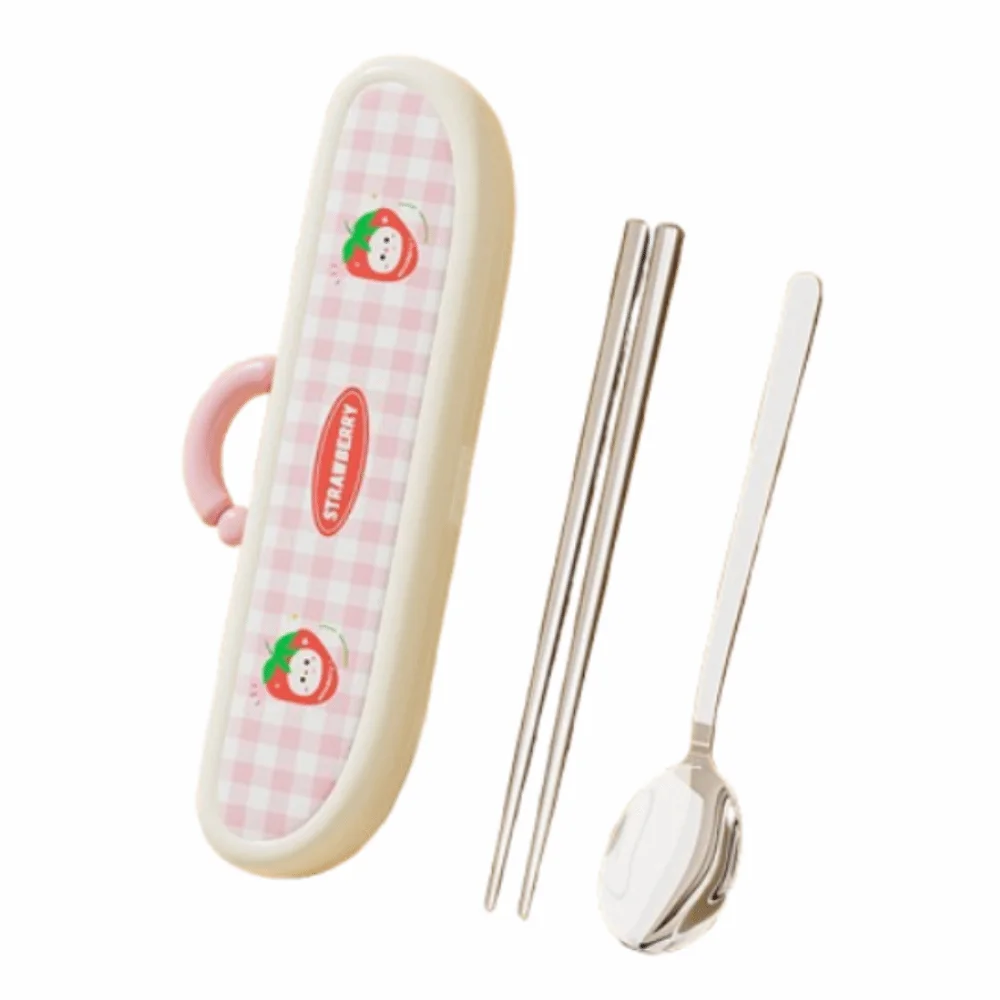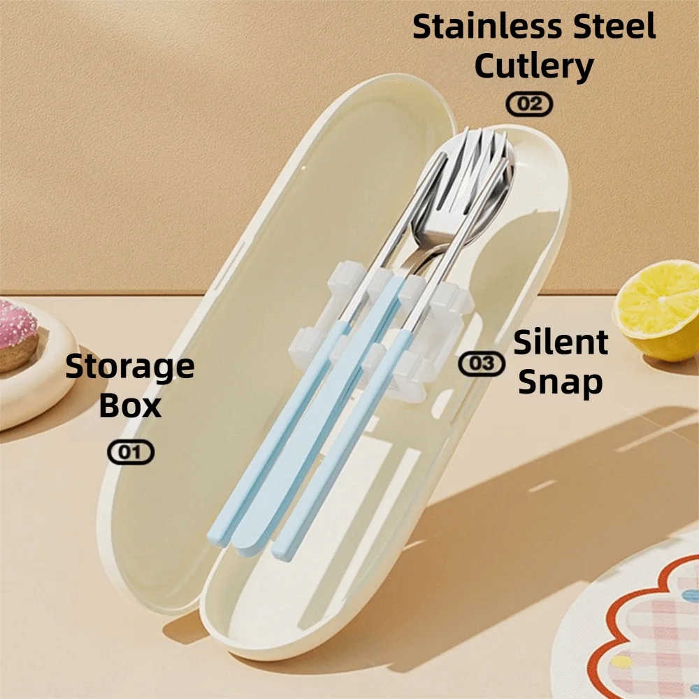 3in1 Portable Tableware Set Stainless Steel Dopamine Spoon Cutlery Set Reusable Storage Box Chopsticks Three-piece Set