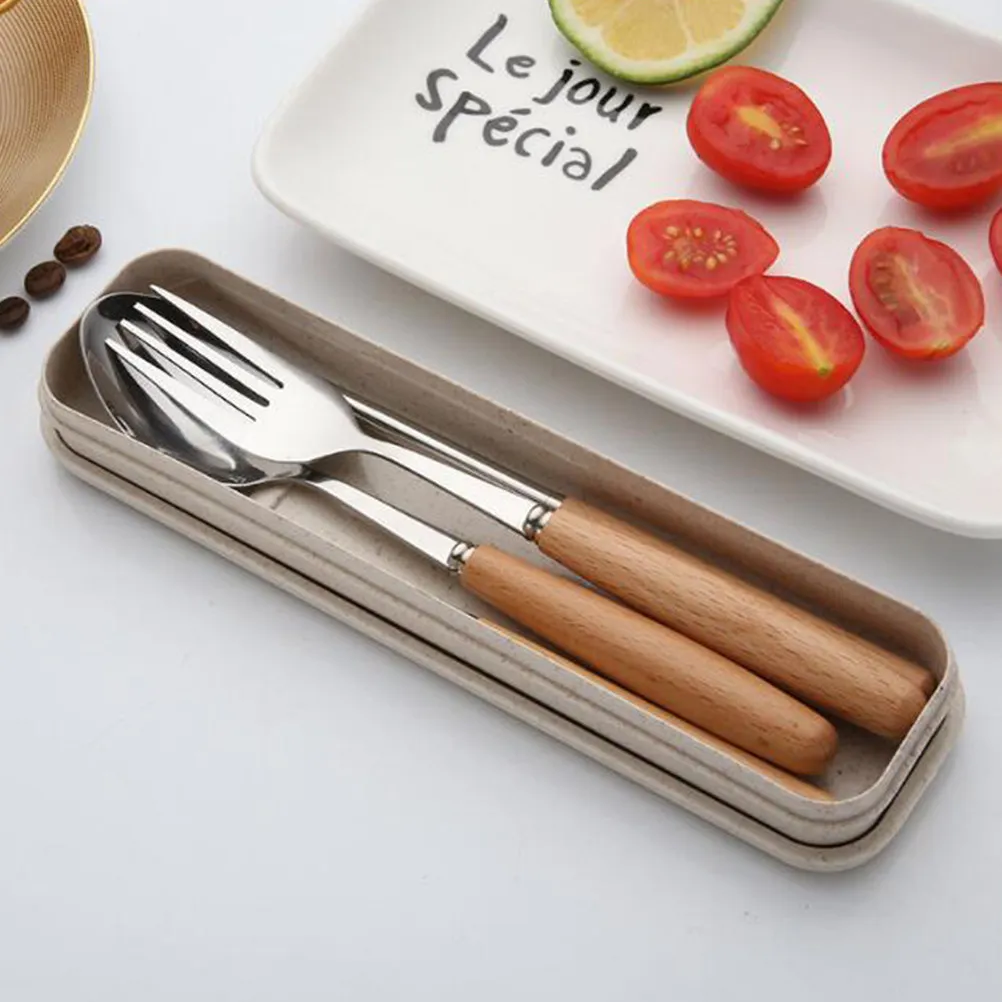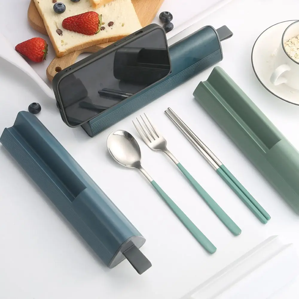 3Pcs Stainless Steel Cutlery Set Portable Chopsticks Spoon Fork Travel Camping Dinnerware Utensils Case Stainless Steel Cutlery