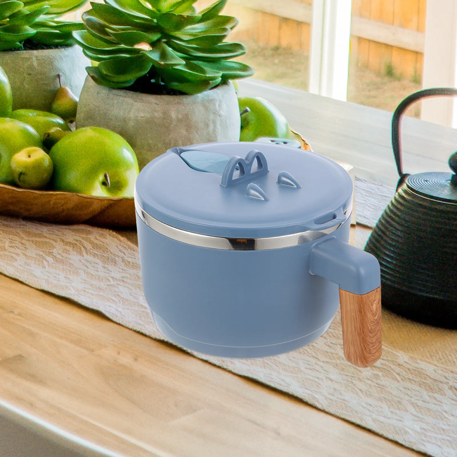 Insulated Noodle Bowl Stainless Steel Leak Proof Round Rice Bowl with Handle Anti Scald Cover Phone Holder Insulated Food Box