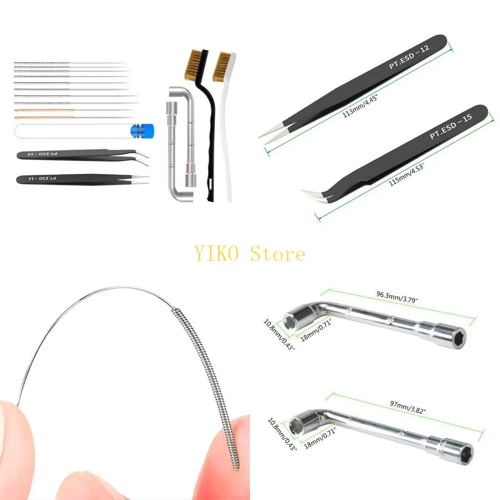 K32C 17Pcs for 1.75mm 3D Printer Brass Nozzls Cleaning Needles Brush weezers Wrench