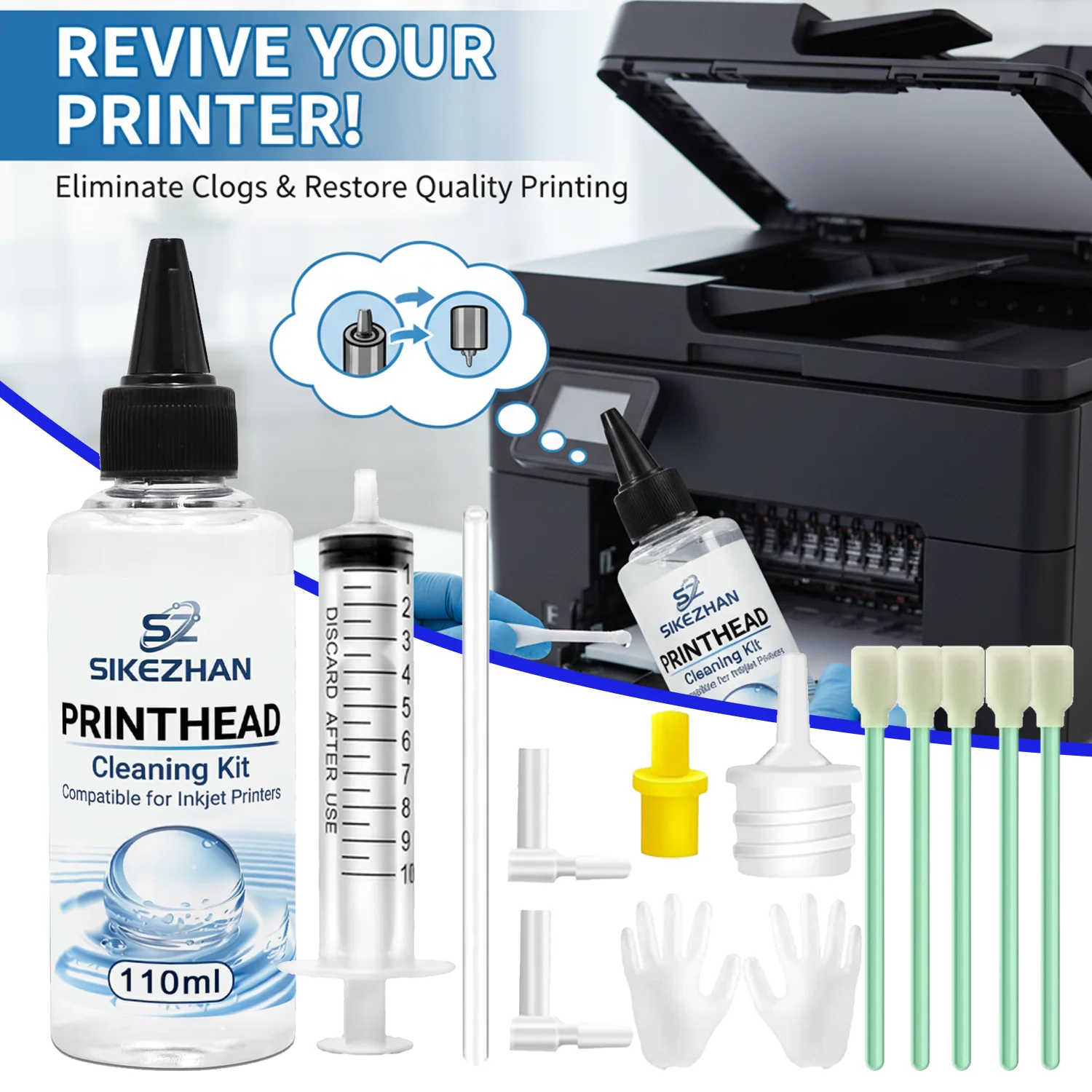 110ml Printhead Cleaning Kit for Inkjet Printers Liquid Cleaner Solution with Syringe Tools Unclog Nozzle Repair SIKEZHAN