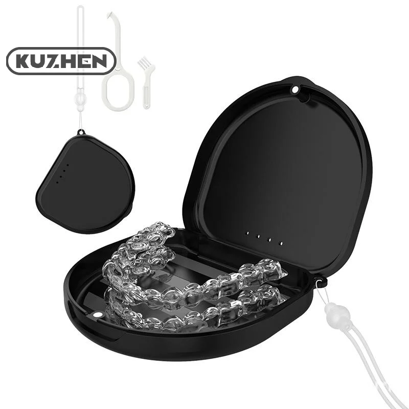 Portable Denture Tray Box Dental Retainer Box Case Plastic Teeth Container Denture Box False Teeth Protective Case With Lanyard