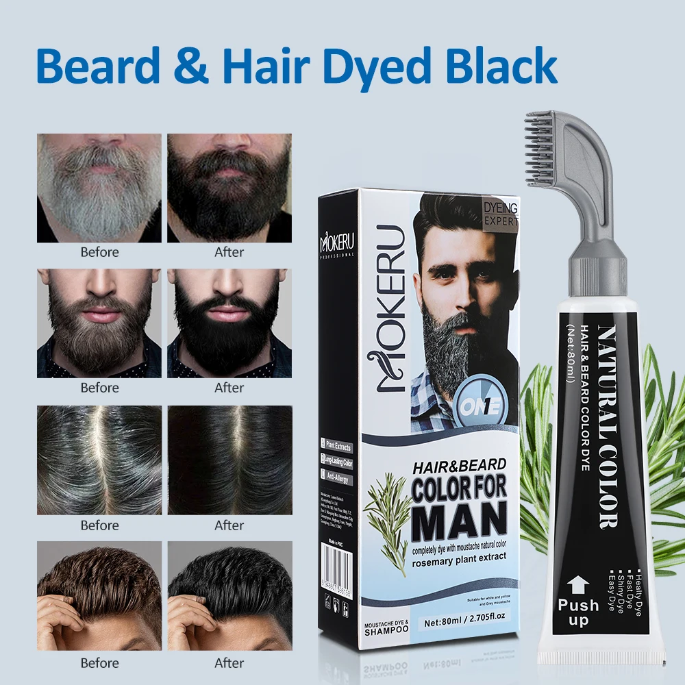 2Pcs/Set Men Efficient Beard Black Dye Tint Cream Mustache Semi-permanent Men's Fashion Nourishing Faster Hair Color Dye