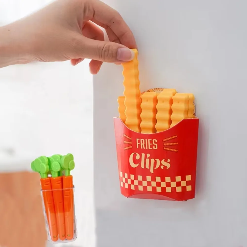 5/12PCS French Fry Carrot Shaped Sealing Clip for Snack Sealing Food Clips Plastic Bag Seasoning Sealing StripsWall Mounted