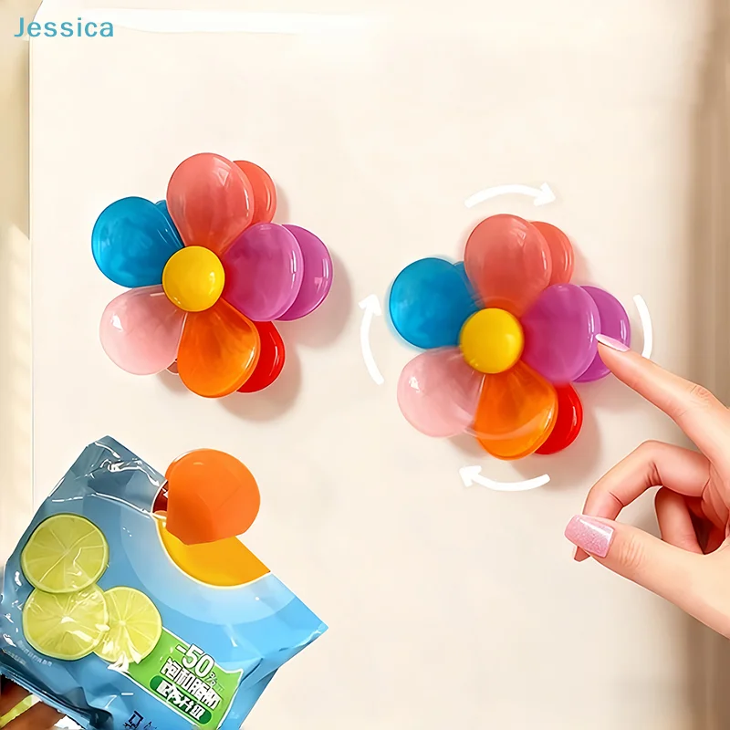 ♥Colorful Magnetic Flower Refrigerator Magnets & Bag Clips - 2-in-1 Fridge Decor & Food Sealer Clips