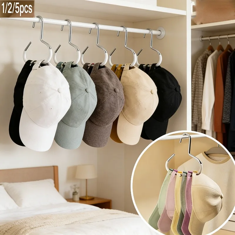 1/2/5pcs Stainless Steel Hat Hanger Hat Rack Multifunctional Round Hook Scarf Towel Tie Hanger Multifunctional Display Stand