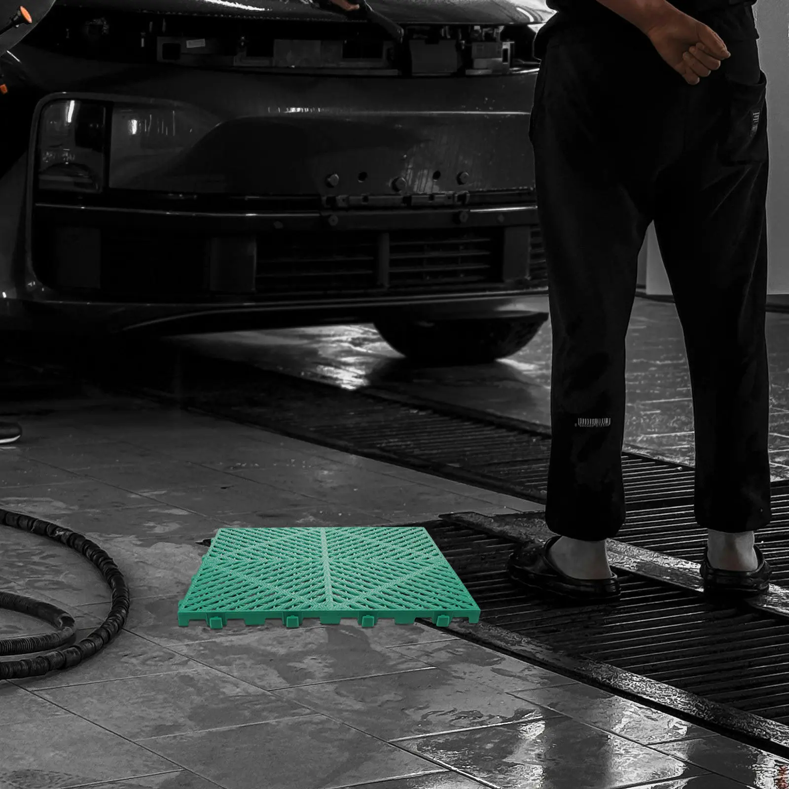 2Pcs Square Grate Panel Interlocking Garage Floor Tiles Rapid Drainage System Waterproof Non Slip for Car Wash Flooring Utility