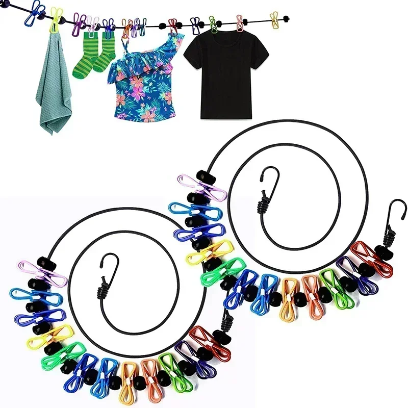 2Pcs Retractable Clothes Line Portable Travel Laundry Rope Sturdy Drying Line for Home Balcony Garden Camping Travel Clothesline