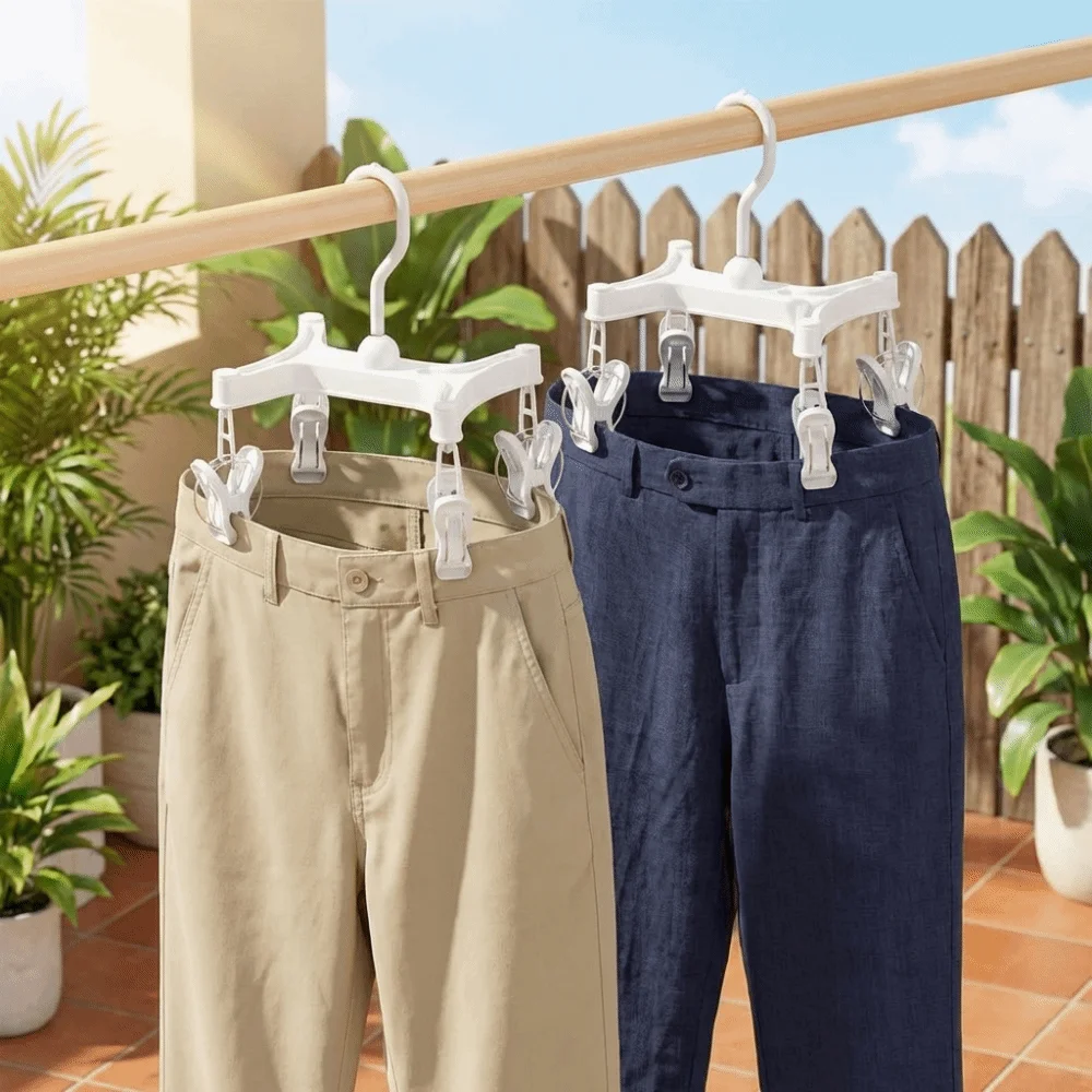 360° Rotatable H Shaped Trouser Hanger Efficient Wind-Resistant Pants Hanger Space Saving with Clips Underwear Drying Rack