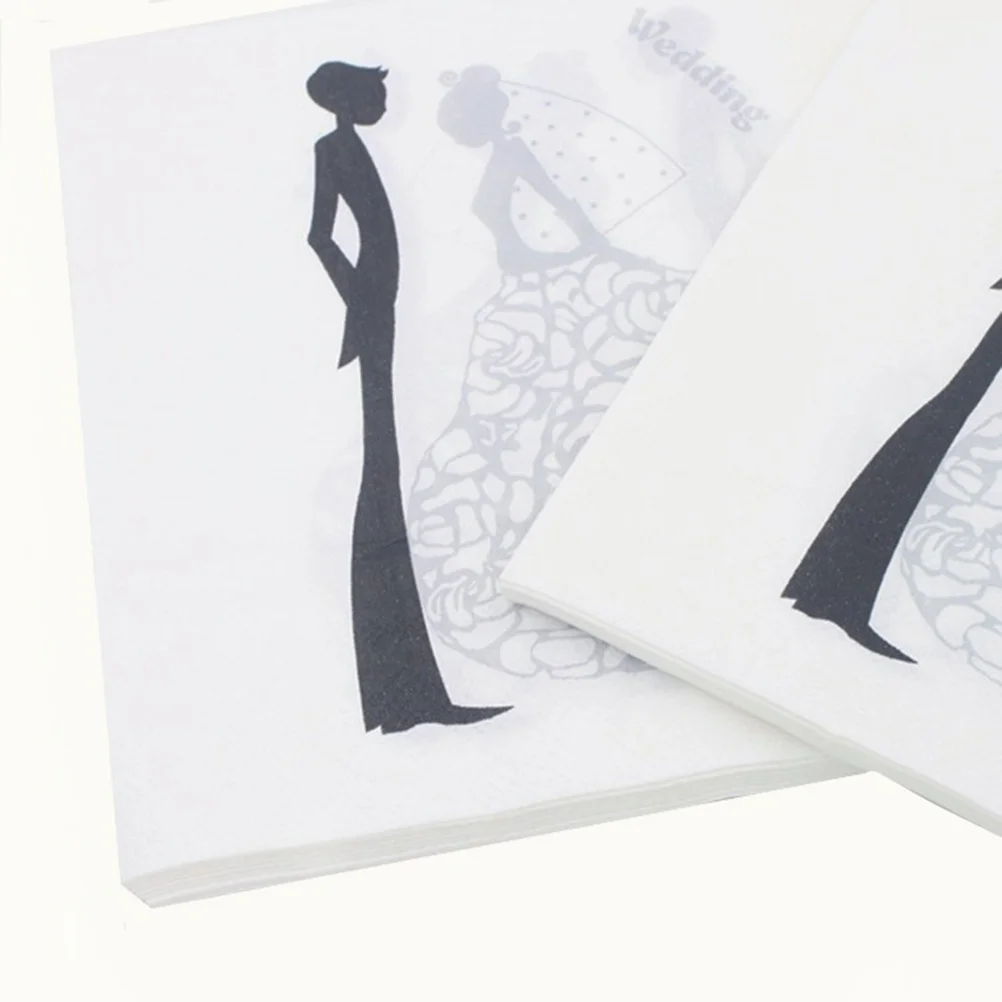 40Pcs Floral Print Napkins Bride Groom Theme Wedding Paper Napkins Party Favor Decorations for Banquet Celebration