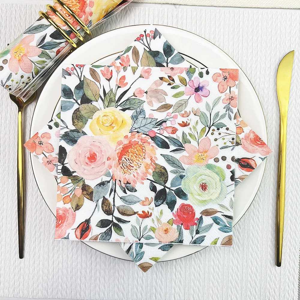20 printed flower napkins per pack, disposable tissues, birthday party napkins, festival gathering napkins