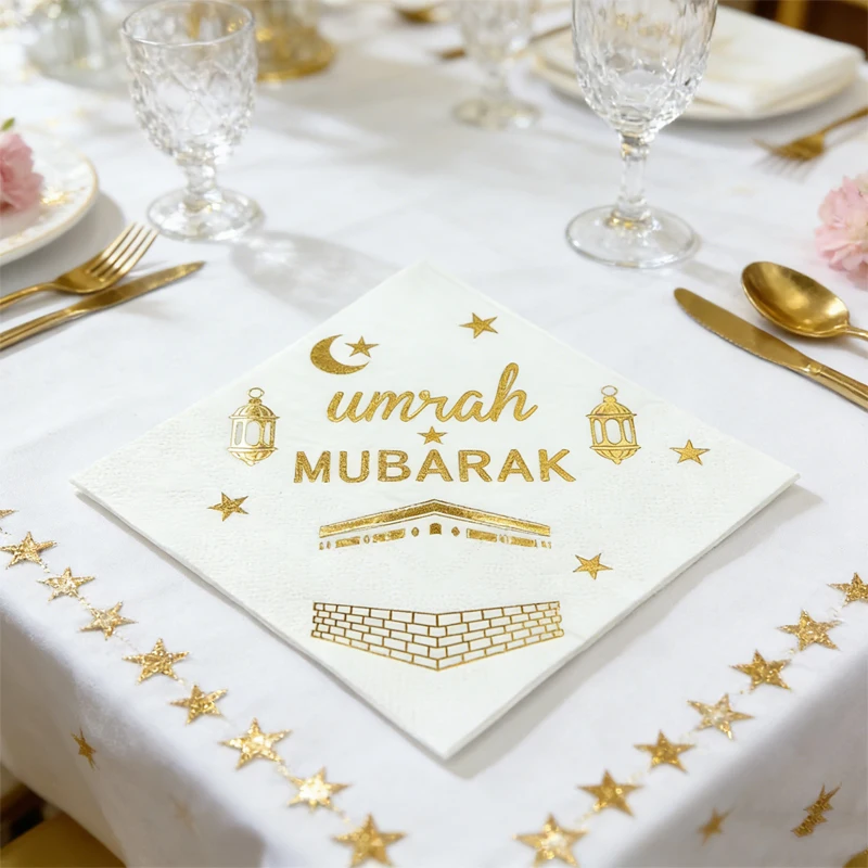 10pcs Umrah Mubarak Disposable Napkins Ramadan Pilgrimage Party Hajj Islamic Muslim Festival Party Table Decoration Supplies