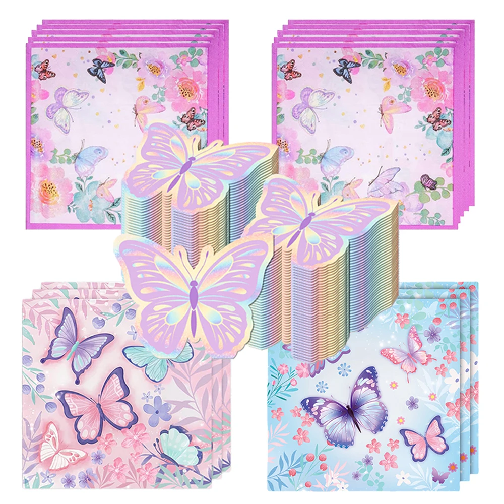 20/40/60Pcs Butterfly Shape Disposable Cocktail Paper Napkins Garden Theme Kids Girl Baby Shower Birthday Party Decor Supplies