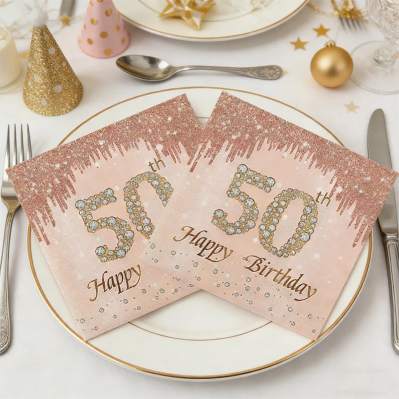 10Pcs Rose 18th 30th 40th 50th 60th Happy Birthday Napkins Ladies Happy Birthday Anniversary Party Table Decor Supplies
