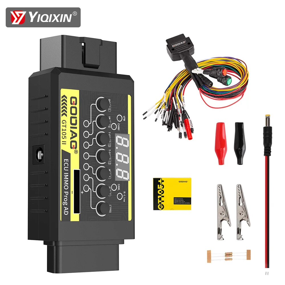 GODIAG GT105 II IMMO Prog AD OBD2 Break Out Box ECU Connector Full Protocol OBD2 Jumper For Benz BMW Display Car Battery Voltage