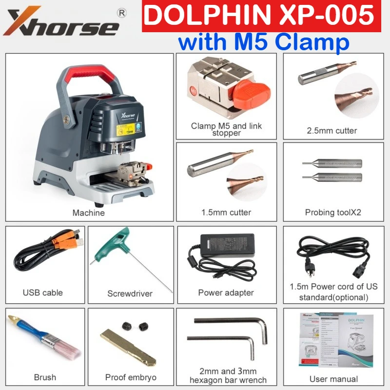 V2.1.3 Xhorse Dolphin XP005 XP-005 Key Cutting Machine with M5 Clamp Automatic Key Cutting Machine with Battery Inside Portable